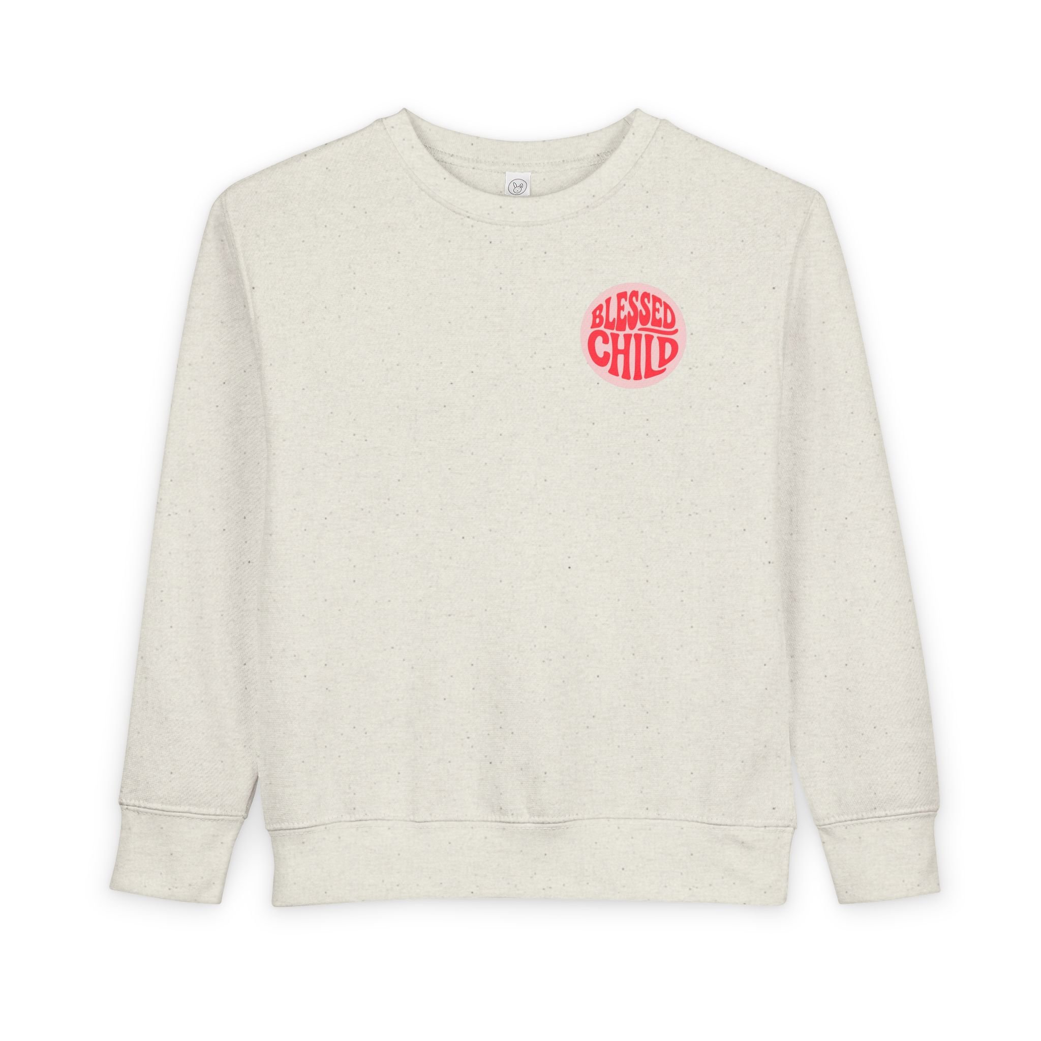 Soft, cozy toddler sweatshirt designed for everyday adventures and quiet moments at home. The gentle heather fabric and relaxed crewneck give a lived-in feel straight out of the box. A small, cheerful chest graphic adds personality without overwhelming the look — easy to layer over tees or under jackets. Durable coverstitching at the collar, shoulders and armholes stands up to playground play and repeated washes, while the tear-away Easy Tear™ label keeps the neckline irritation-free. Lightweight enough for cool mornings, warm enough for snuggly naps — a thoughtful sweatshirt that grows with the child’s curiosity.